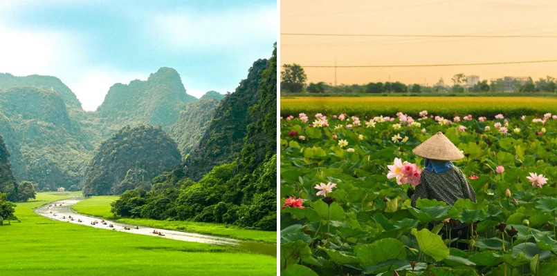 Get ready at 7-7:30 am for a 120-km trip to Ninh Binh, where you'll visit Hoa Lu Ancient Citadel. The lush, verdant landscape on two sides will surprise you. We'll pull over for 20 minutes, so take your chance to capture this beauty.