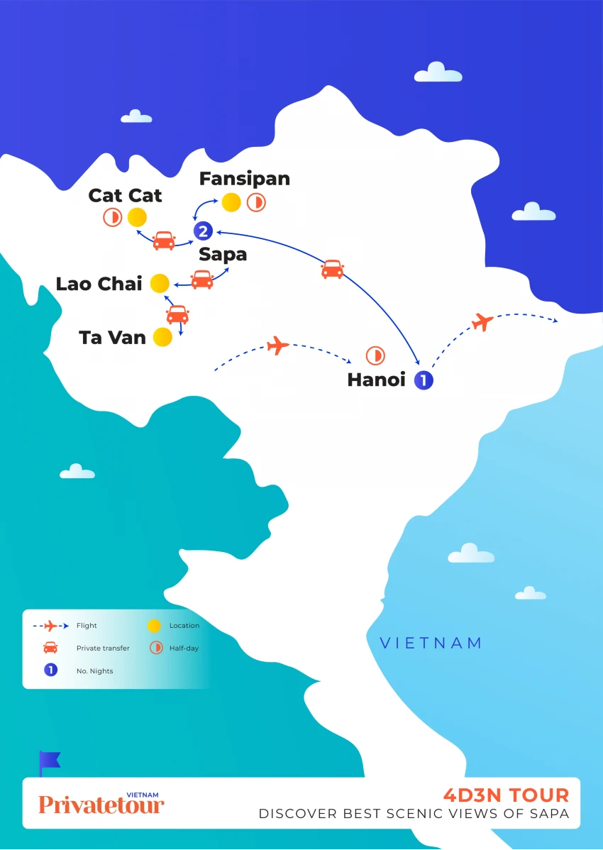 The next day, we'll move from Sapa to Lao Chai and Ta Van village to discover the life of different minorities living in the same region. Despite development, they still keep their tradition, language, and lifestyle.