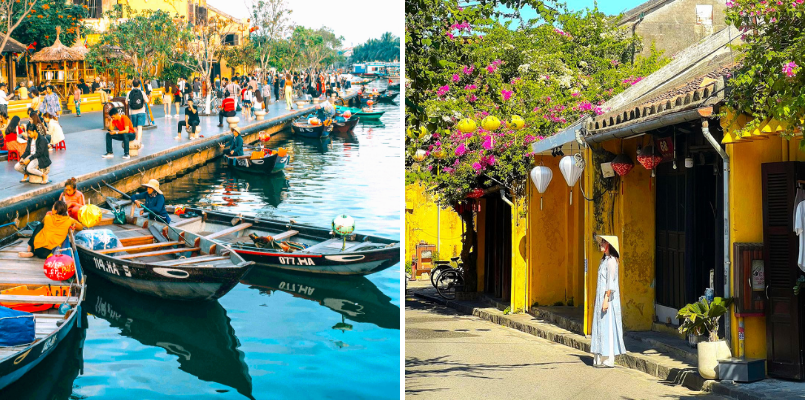 Next, stroll along the Hoai River, where the streets are full of colorful lanterns. These lanterns light up the night, creating a peaceful atmosphere that makes every walk through the town feel magical and timeless.