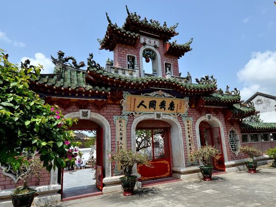 Our next activity is walking in Hoi An Old Town. We'll first visit the Phuc Kien Chinese Assembly Hall, a masterpiece of architecture in the city. The property was built in 1690 and served as a socializing place for Fujian, a Chinese ethnic group. Its architecture and design are influenced by Chinese tradition, culture, and religion. Its big territory (around 2000 square meters) features an elegant gate, a vibrant courtyard, and a stunning fountain, making it an ideal place for photo lovers.