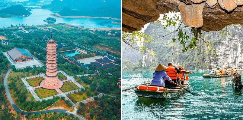 We will arrive at 10 am and start exploring the first destination, Bai Dinh Pagoda. It's located near Trang An Complex, a UNESCO World Heritage Site, and granted the title "the most famous and biggest Pagoda in Southeast Asia." It holds many records, such as the tallest stupa in Asia, the longest Arhat corridor in Asia, the largest number of Bodhi trees in Vietnam, etc.